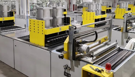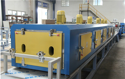 履帶式玻璃鋼拉擠生產(chǎn)線(xiàn)是由PLC控制,集連續(xù)牽引、自動(dòng)切割為一體的型材自動(dòng)化拉擠設(shè)備。該生產(chǎn)線(xiàn)由紗架、浸膠及預(yù)成型、擠壓模具成型固化、連續(xù)拉擠牽引機(jī)、切割鋸、卸料架六個(gè)部分組成。